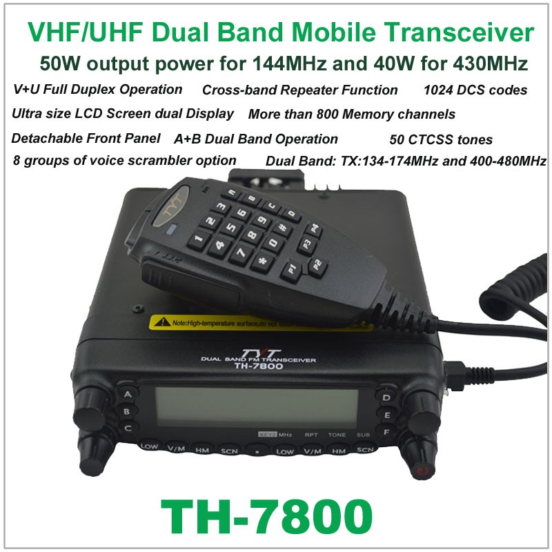 TYT TH-7800 TH7800 Car Radio Walkie talkie Dual Band 136-174/400-480MHz 50W VHF/40W UHF Mobile Transceiver Two way radio