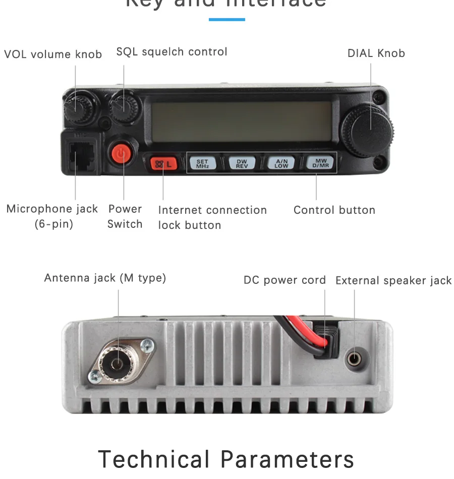 | Current Consumption(typical) | Rx:less than 0.7A, less than 0.3A (squelched)