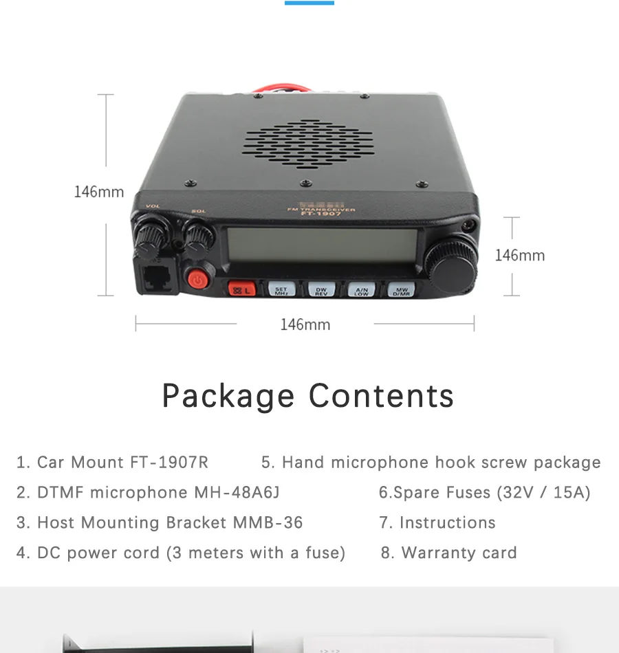 The FT-1907R is a ruggedly-built, high-performance 55-Watt UHF mobile FM transceiver with outstanding receiver performance and crisp, clean audio. Optimized for ease of operation day or night, the FT-1907R is one tough radio for operating in a tough world!